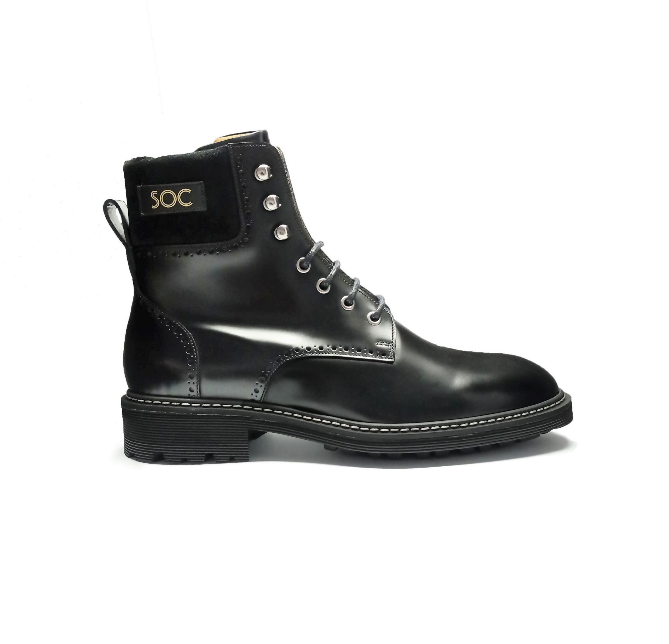 Shefield zip boot with brogue and suede ankle with 3 speed laces